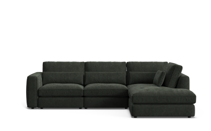 Daphnis Seaweed Velvet Sofa, Grande Chaise Sofa Right Hand Facing